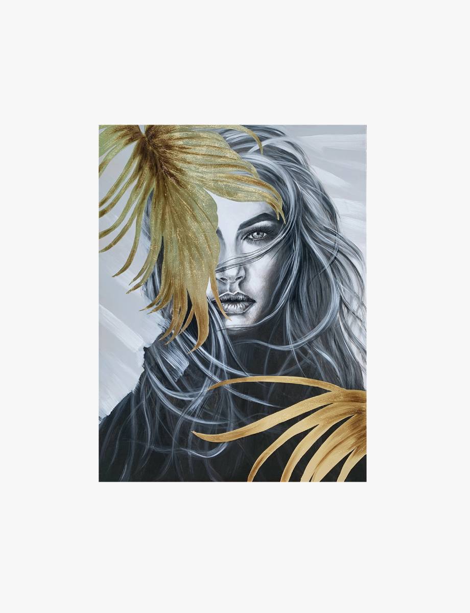 The Allure Painting adds a soft elegance to any room with its golden leaf details and timeless style.