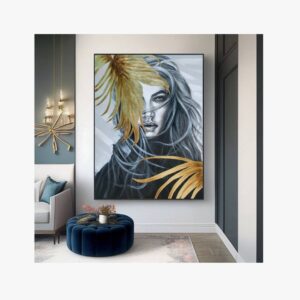 Handmade canvas painting with golden leaves for a luxurious touch