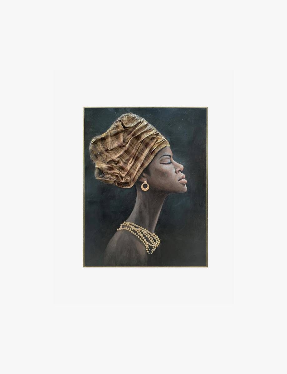 A striking portrait with intricate beadwork details