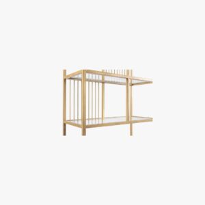 - Shelves made of sleek glass