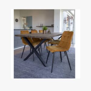 Mustard Velvet Chair with Black Metal Legs