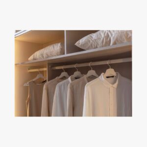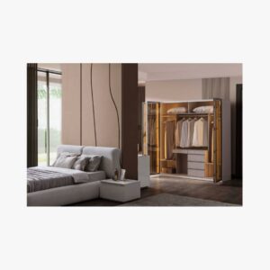 This wardrobe offers superior construction and functional design, complete with sophisticated lighting and integrated storage.
