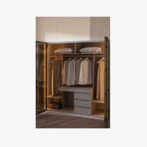 - Features integrated LED lighting inside the wardrobe for enhanced visibility