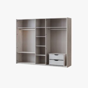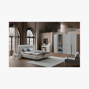 The Point Wardrobe combines warm beige tones with elegant travertine details to provide stylish and practical storage for modern bedrooms.