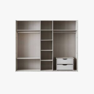 - Five door layout includes hanging rails and shelving