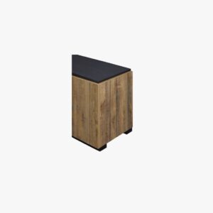 - Features two hinged doors for concealed storage