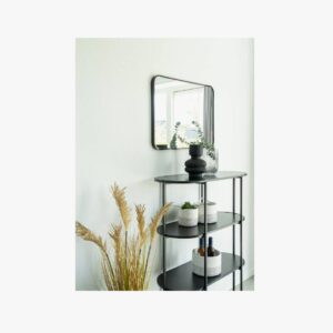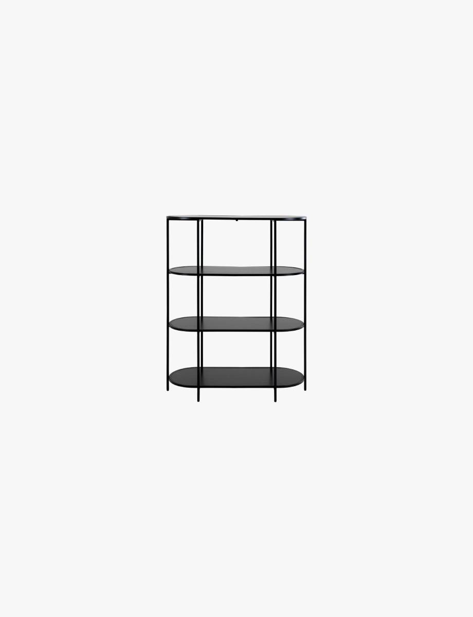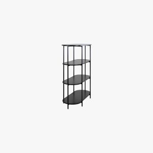 - Features 4 shelves in a black finish