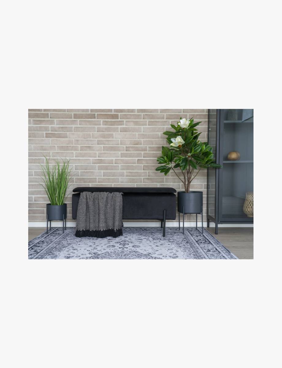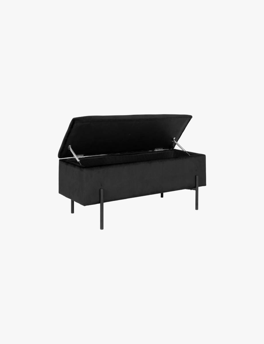 Black Velvet Storage Bench with Black Metal Legs