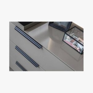 This dresser unites modern elegance with thoughtful design for a tranquil bedroom environment.