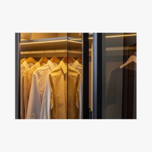 This wardrobe seamlessly blends modern elegance with exceptional functionality.
